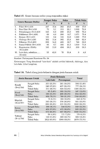Tabel 18. Tabel silang jenis kelamin dengan jenis bacaan cetak